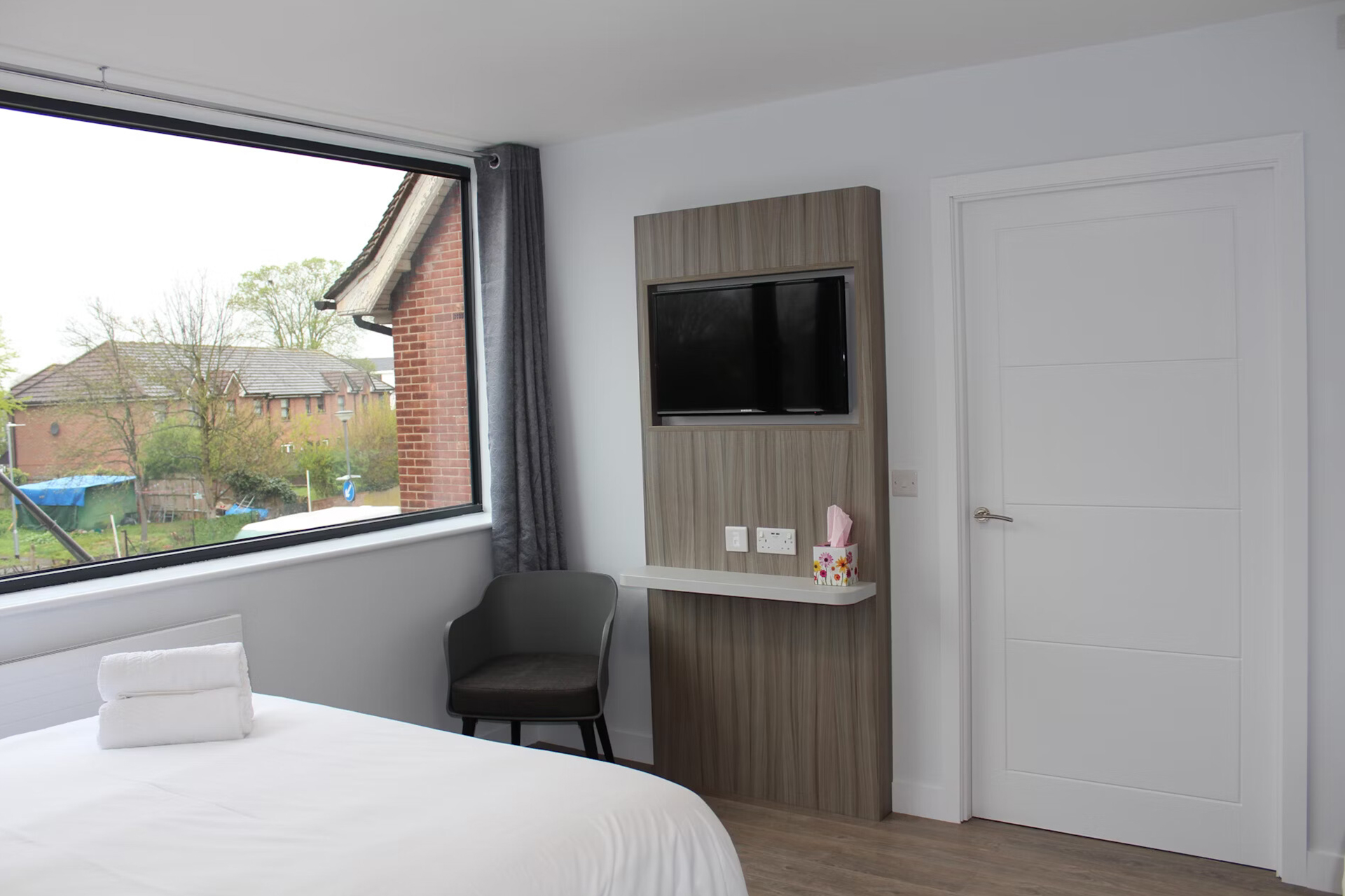 Sky Nights Hotel offers bright and tasteful newly renovated en-suite rooms with fresh, modern décor. Sleep well on a comfortable, large bed and enjoy 32-inch Smart televisions with digital channels and free Wi-Fi, the bathroom featuring a walk-in shower facility, and toiletries. Conveniently located near shops, restaurants, bars, and cafes we have close by, you have all you need on your doorstep.